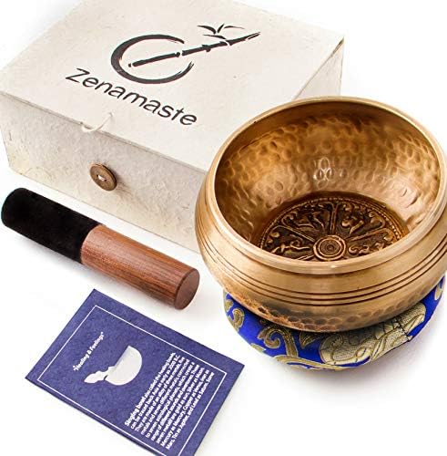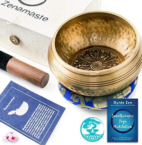Bol Chantant Tibétain Zenamaste – Zen et Méditation – 450gr ⌀11,5cm – Coffret Complet avec Coussin et Maillet Bois, Fabriqué à la Main au Népal