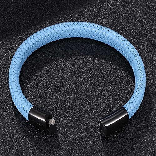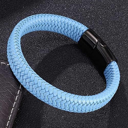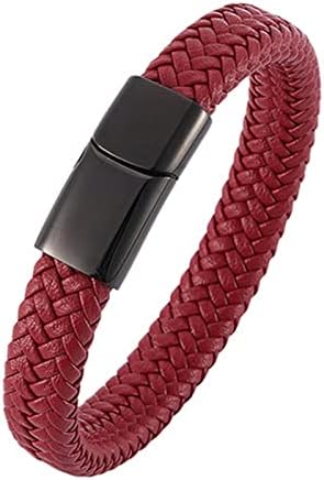 Bracelet Homme Luxe en Cuir Noir Tressé avec Acier Inoxydable – Idée Cadeau, Look Classique