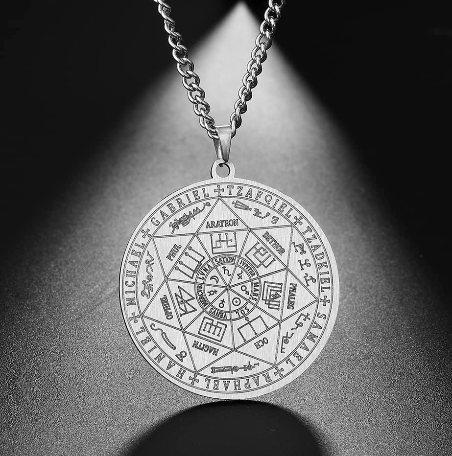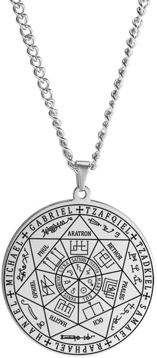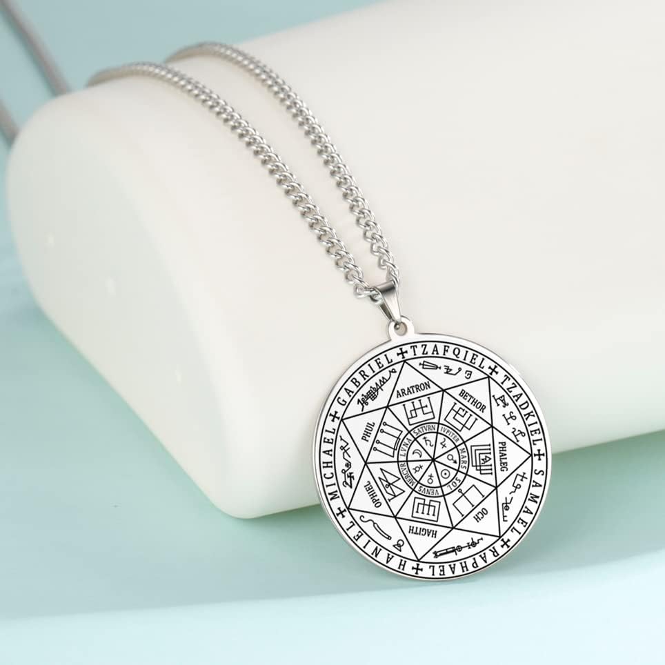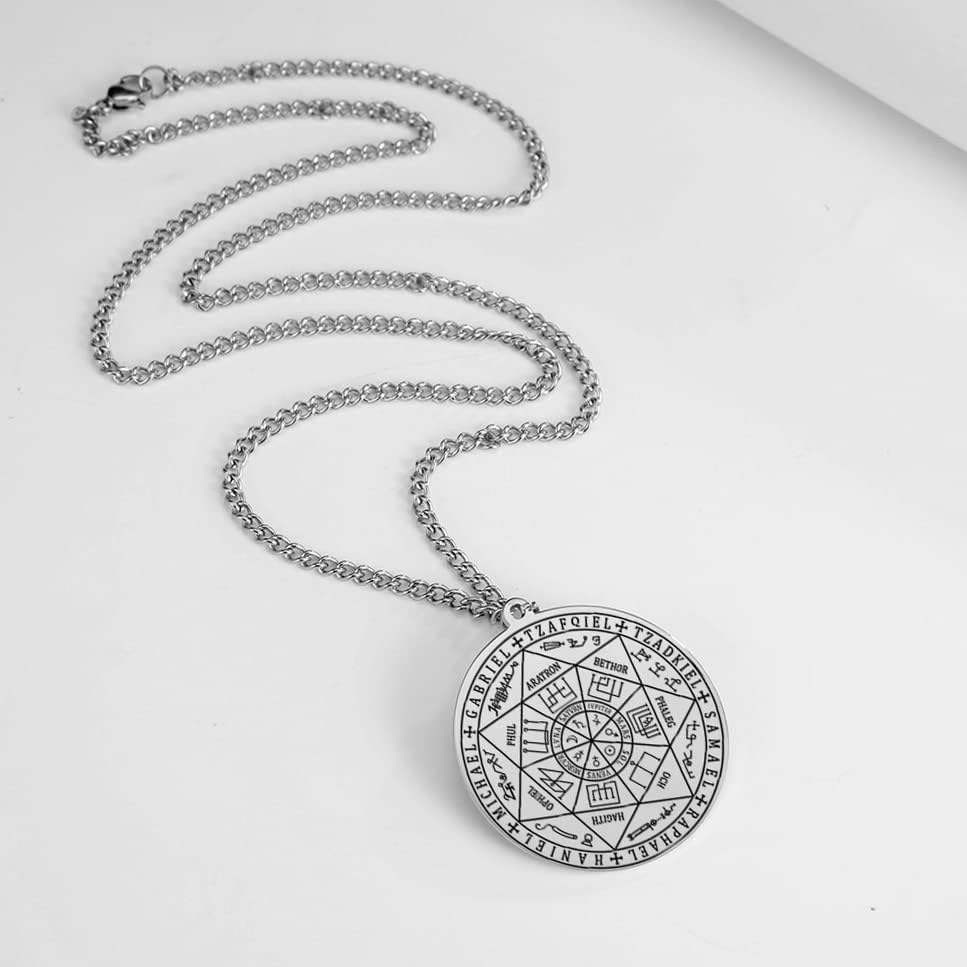 Ce bijou en acier inoxydable solide représente un sceau vintage des sept Archanges, sa chaîne est robuste et son fermoir durable. Il allie confort et élégance, idéal pour toutes les occasions.