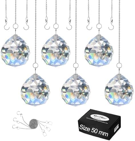 Pour un investissement minime, vous bénéficiez d’une décoration impressionnante pour votre pièce grâce à nos 6 boules de cristal de 50 mm. La qualité supérieure du cristal K9 garantit une brillance exceptionnelle et une diffusion optimale de la lumière et des couleurs. Utilisez simplement une corde pour les suspendre via le petit trou prévu à cet effet en haut de chaque sphère. Cela permet d’obtenir un spectacle lumineux éblouissant dès que les rayons du soleil traversent les prismes.