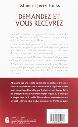 Ce livre dévoile l’enseignement unique et exceptionnel d’Abraham, une entité immatérielle qui s’exprime à travers Esther Hicks. Les leçons contenues ici sont d’une telle profondeur spirituelle qu’elles peuvent vous aider à façonner une nouvelle vie à travers le pouvoir de votre imagination et de vos sentiments. Abraham nous offre une vision des lois universelles qui régissent notre réalité et notre notion du temps et de l’espace.