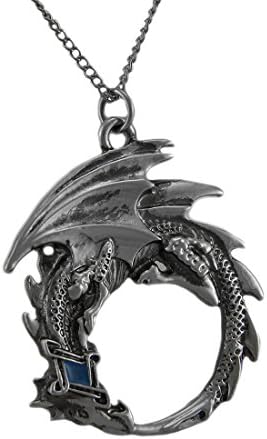 Le symbole visuel de l’ouroboros est une représentation du cycle infini du recyclage et de la renaissance. Il incarne la personne dont les souvenirs du passé ont modelé mais ne sont plus visibles dans le présent, préparant ainsi le futur. Cet élégant pendentif Dragon ouroboros est forgé à partir d’un alliage de zinc non-allergène. Son diamètre est approximativement de 1 3/10,2 cm. Il est embellit par des ornements d’émail en couleurs de bleu turquoise. Le pendentif vient avec une chaîne de 45,7 cm pour être porté facilement autour du cou. L’emballage inclut un petit sac en satin de couleur violette, où se trouve également une carte détaillant la signification de ce symbole profond.
