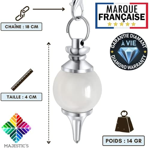 💎 Pendule de radiesthésie en Pierre Semi-Précieuse Naturelle de Quartz Blanc, taillé à la main. Les pierres peuvent présenter quelques petites irrégularités qui sont normales pour un cristal, témoignant de son authenticité.