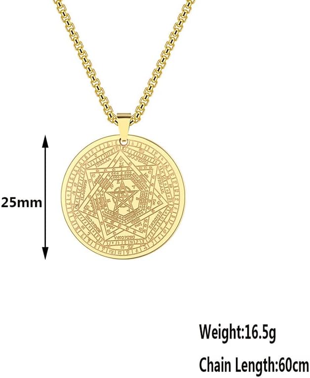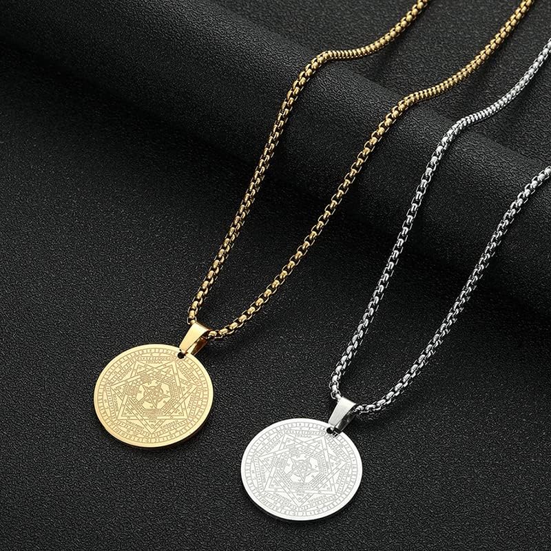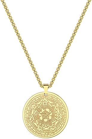 Ce collier est un clin d’oeil aux sceaux des sept archanges, une source d’inspiration pour son design. Réalisé en acier inoxydable, ce bijou se démarque par sa robustesse et sa résistance au temps.