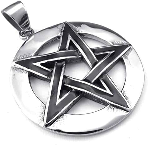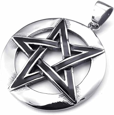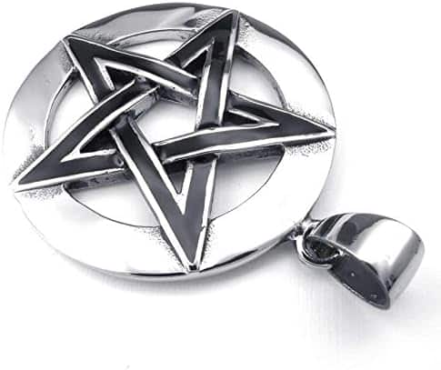 Pentacle de Protection Hommes : Collier Pendentif élégant en Acier Inoxydable Noir Argenté d’ANAZOZ