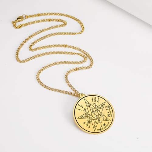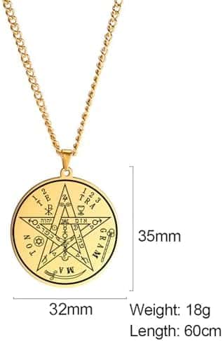 L’amulette présentée ici est également appelée pentagramme, l’un des symboles occultes les plus anciens. Elle est connue sous le nom de Te-Tra-Gram-Am-Ton, une appellation qui représente la véritable dénomination de Dieu.