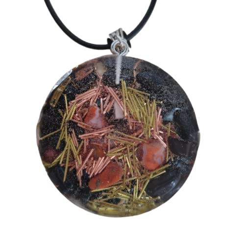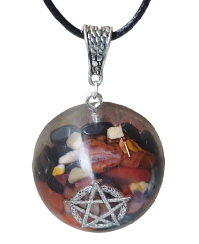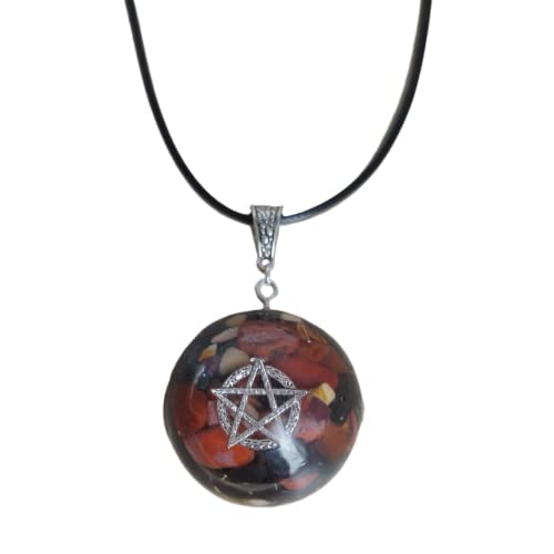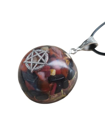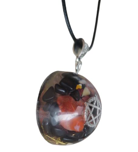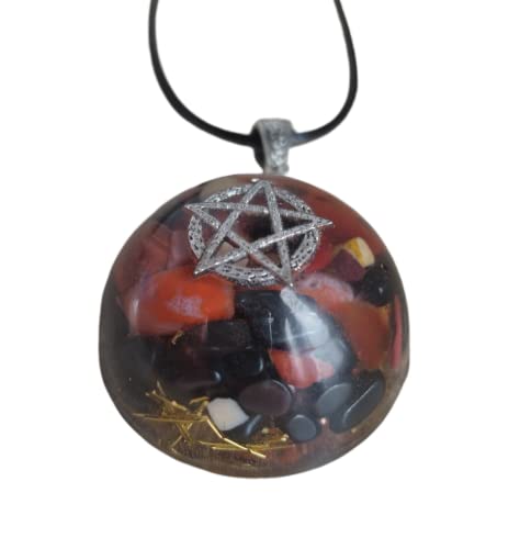 🔮 Caractéristiques spéciales : pendentif orgonite avec pentacle wicca, composé de résine époxy, agate rouge, hématite, mookaite, laiton et cuivre.