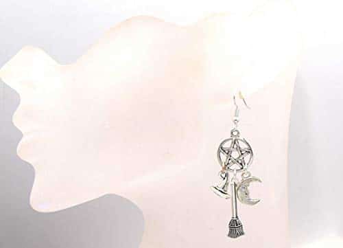 Voici des boucles d’oreilles uniques, présentant un pentacle, attribut indispensable de la wicca. Ces bijoux hautement significatifs sont agrémentés de détails mettant en exergue des attributs de sorcière, comme le balai et le chapeau, ainsi qu’un élément lunaire. Le tout, assemblé sur des crochets conçus pour des oreilles percées, est complété par des fermoirs en silicone pour plus de sécurité. Les boucles ont des dimensions de 18X17 mm et dégagent une brillance argentée. Vous n’aurez pas à vous soucier des allergies car elles sont garanties sans nickel, sans cadmium et sans plomb.